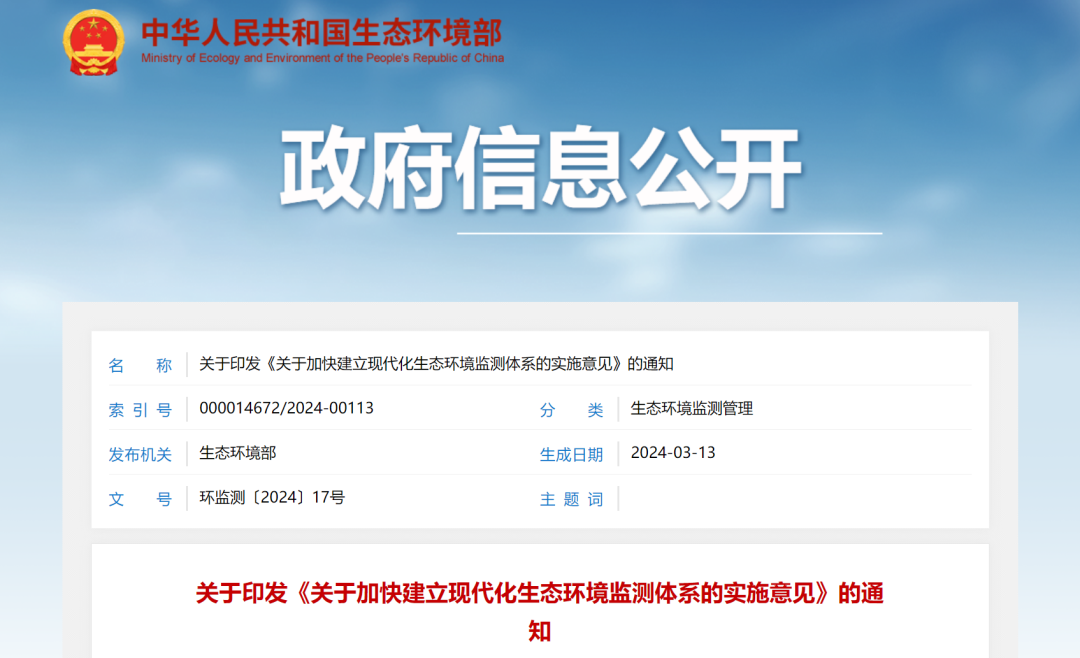 生態(tài)環(huán)境部印發(fā)《關(guān)于加快建立現代化生態(tài)環(huán)境監測體系的實(shí)施意見(jiàn)》