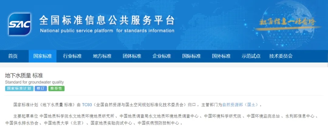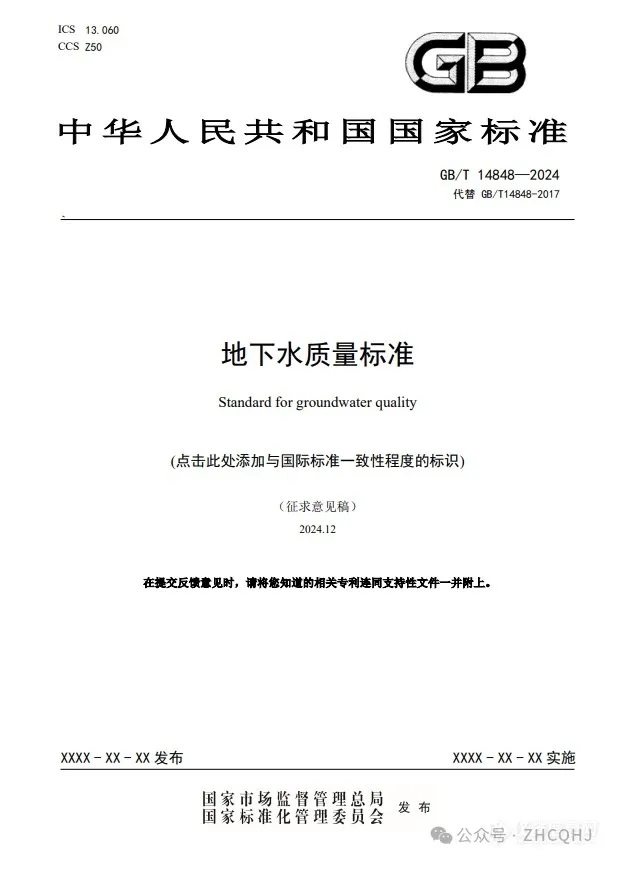 GB/T 14848《地下水質(zhì)量標準》公開(kāi)征求意見(jiàn)