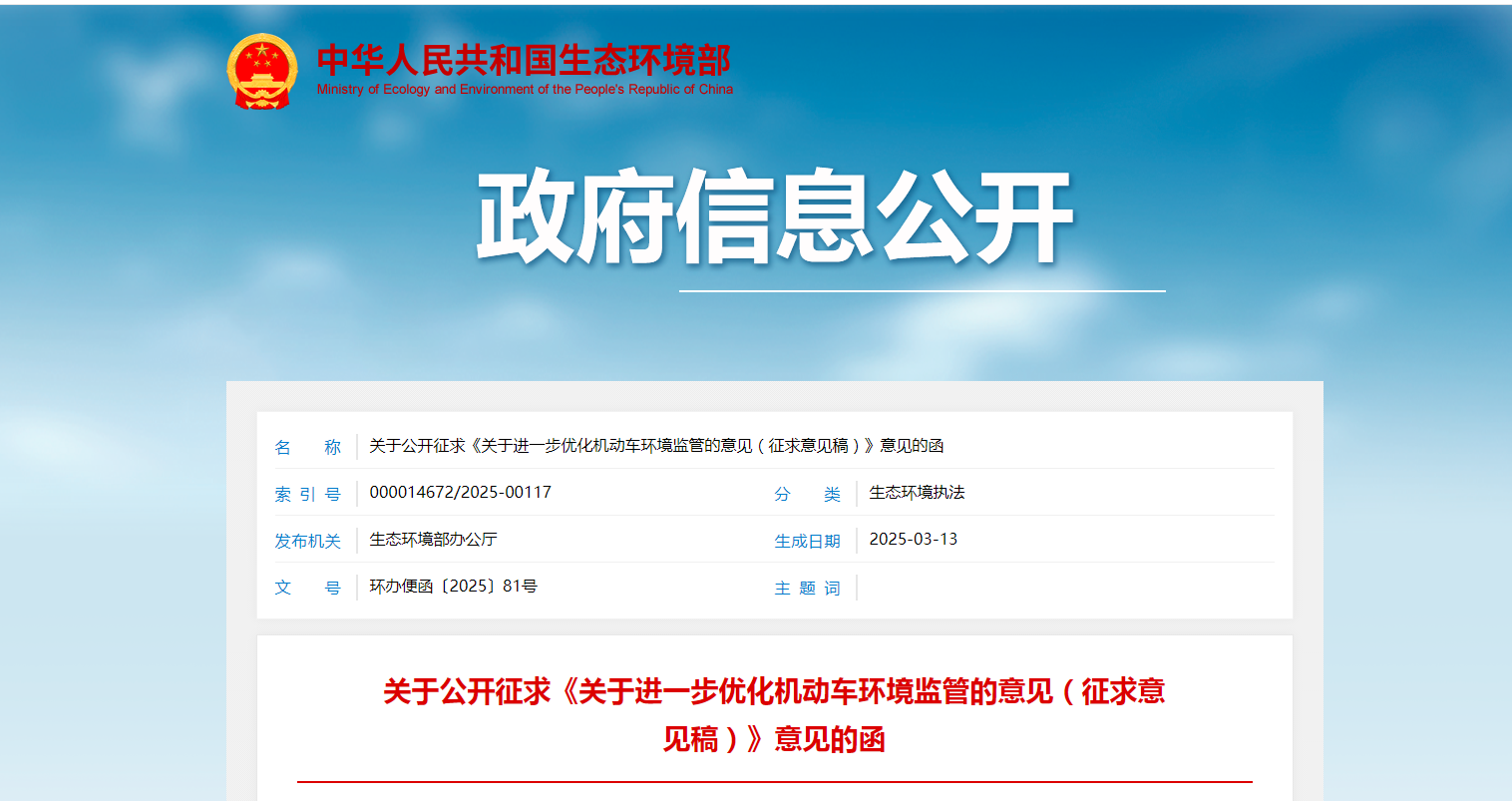 多部門(mén)協(xié)同發(fā)力,優(yōu)化機動(dòng)車(chē)環(huán)境監管,生態(tài)環(huán)境部公開(kāi)征求《關(guān)于進(jìn)一步優(yōu)化機動(dòng)車(chē)環(huán)境監管的意見(jiàn)(征求意見(jiàn)稿)》意見(jiàn)