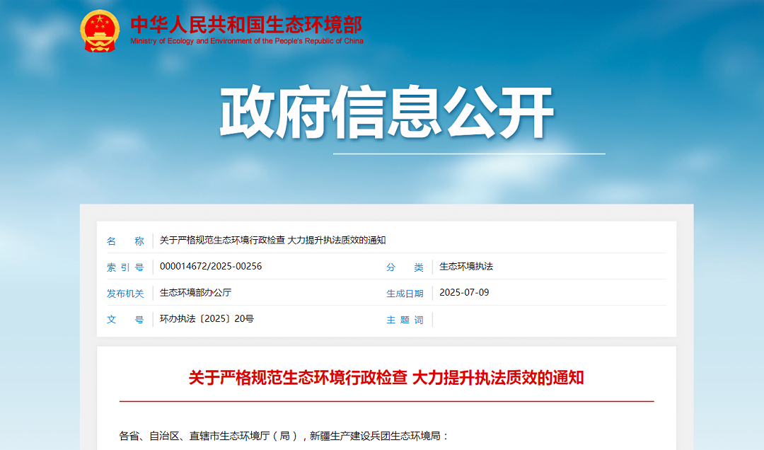生態(tài)環(huán)境部發(fā)文:嚴格規范行政檢查,大力提升執法質(zhì)效