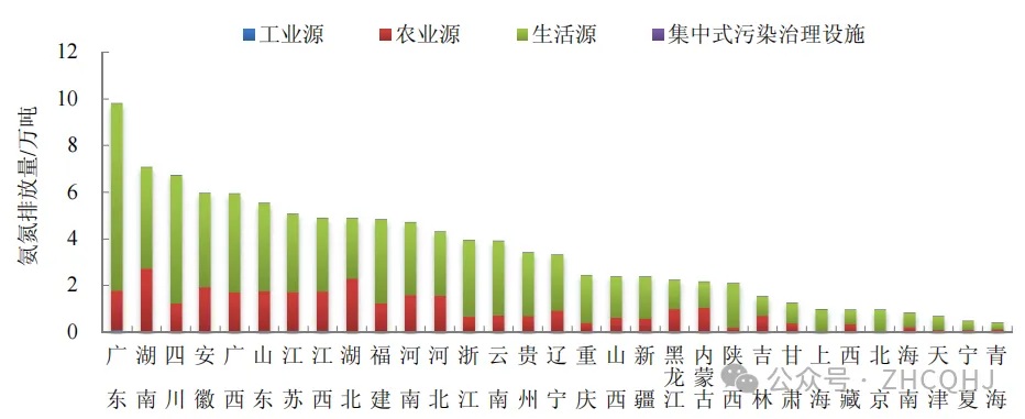 2024年,,占全國氨氮排放量的33.5%。2024年各地區氨氮排放情況見(jiàn)圖2-3。