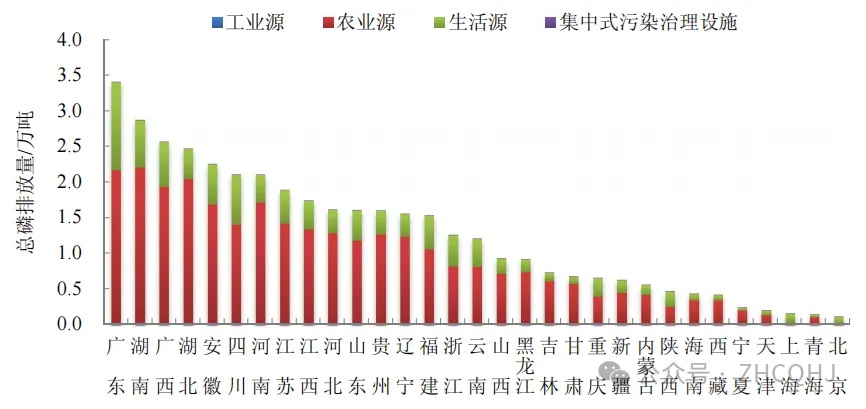 2024年,,占全國總磷排放量的34.7%。2024年各地區總磷排放情況見(jiàn)圖2-7。