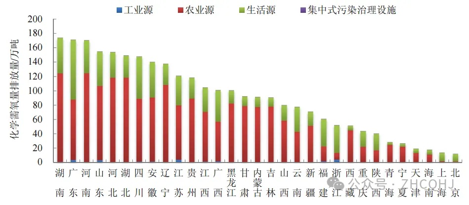 2024年,,排放量合計為821.7萬(wàn)噸,占全國化學(xué)需氧量排放量的29.3%。2024年各地區化學(xué)需氧量排放情況見(jiàn)圖2-1。