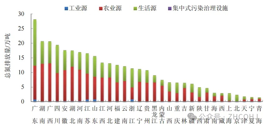 2024年,,占全國總氮排放量的32.7%。2024年各地區總氮排放情況見(jiàn)圖2-5。