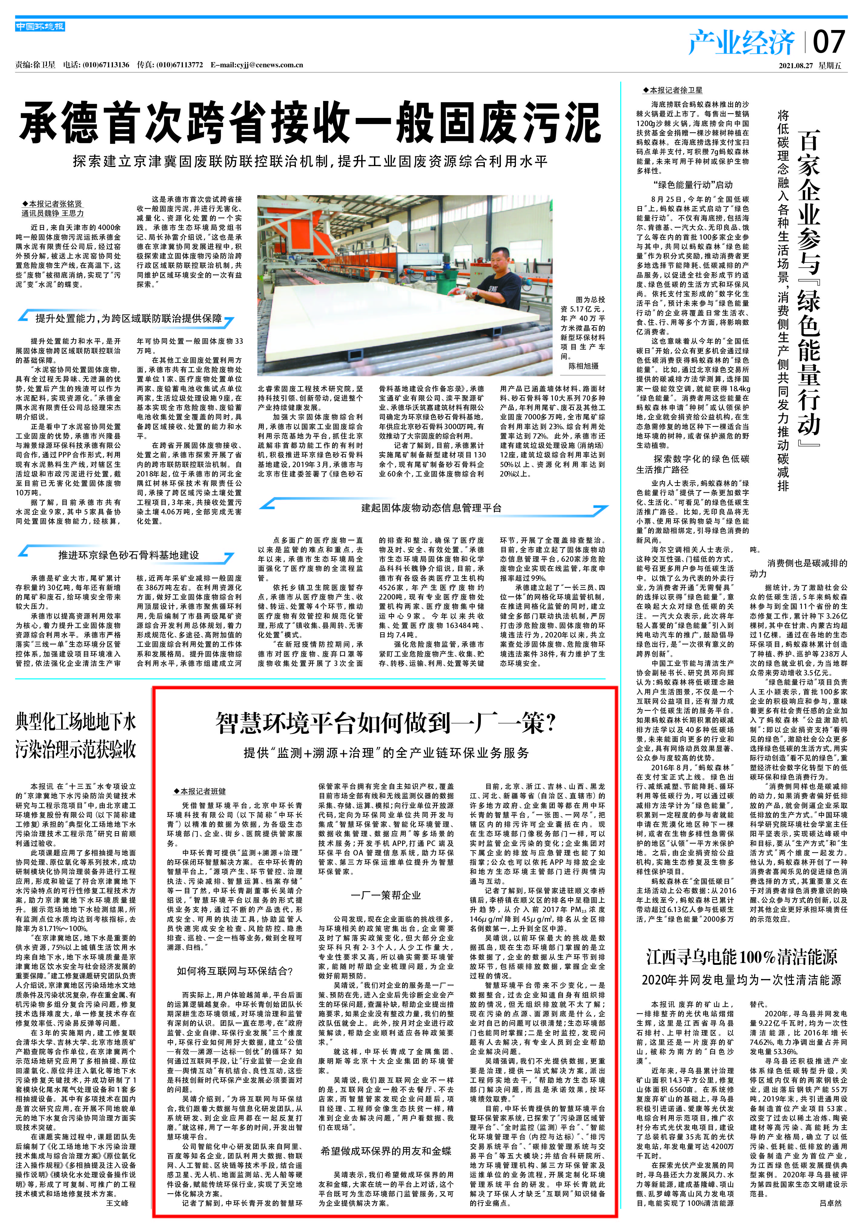 2021年8月27日,中國環(huán)境報大篇幅報道了北京中環(huán)長(cháng)青環(huán)境科技有限公司在智慧管家平臺“一廠(chǎng)一策”方面的技術(shù)經(jīng)驗。