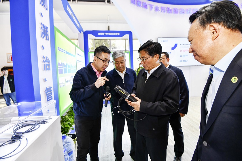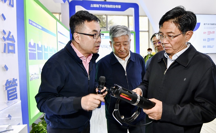 孫金龍書(shū)記率隊巡館的首站,即來(lái)到中環(huán)豐清展區;了解國家地下水污染防治試驗區的情況、了解中環(huán)豐清技術(shù)團隊在土壤、地下水行業(yè)“強化源頭防控,堅持城鄉統籌,持續深入打好凈土保衛戰”方面的技術(shù)特色、了解地下水污染行業(yè)新技術(shù)、新業(yè)態(tài)的發(fā)展模式。中環(huán)豐清董事長(cháng)穆彬首先感謝孫金龍書(shū)記首站蒞臨指導和親切指示,結合工作成果展板和多媒體材料,以“查、測、溯、治、管、服、控”閉環(huán)技術(shù)協(xié)同為主題,向孫金龍書(shū)記具體匯報技術(shù)團隊在土壤、地下水污染防治方面的從業(yè)體驗與現階段取得的技術(shù)成果。