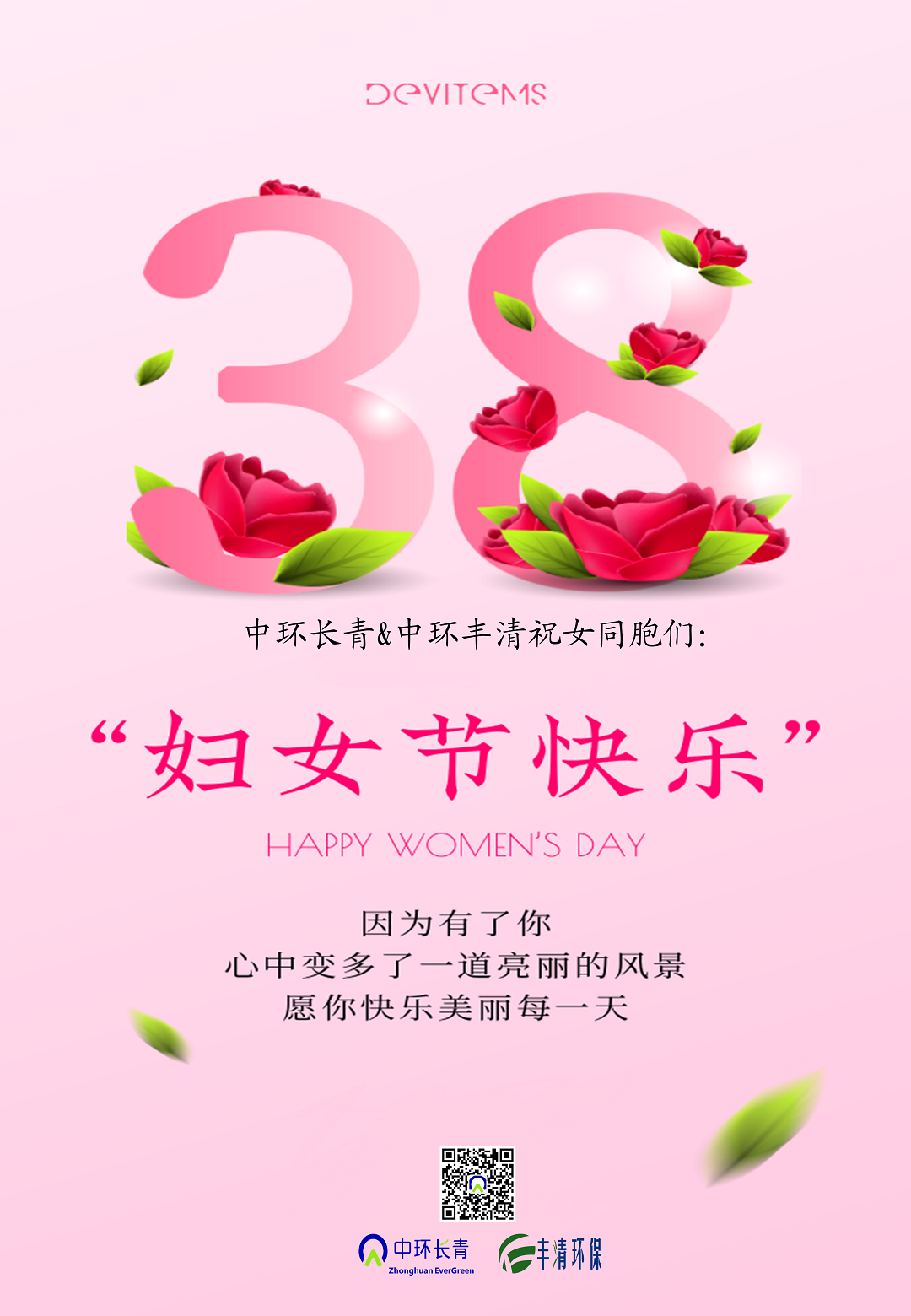 因為有了你,心中便多了一道美麗的風(fēng)景,愿你快樂(lè )每一天,長(cháng)青&豐清祝女同胞們婦女節快樂(lè )!