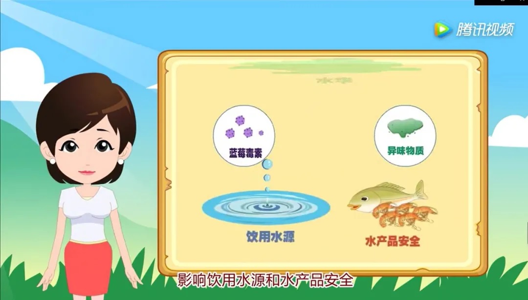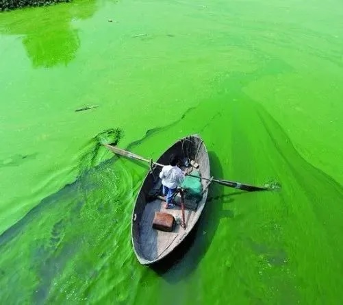 水華大量發(fā)生時(shí),水面形成一層很厚的綠色藻層,能釋放毒素—湖靛,對魚(yú)類(lèi)有毒殺作用。藻類(lèi)死亡、腐敗、分解后,消耗大量水中溶解氧,使水體產(chǎn)生惡臭,不僅破壞水產(chǎn)資源,也影響水體美學(xué)與游樂(lè )。